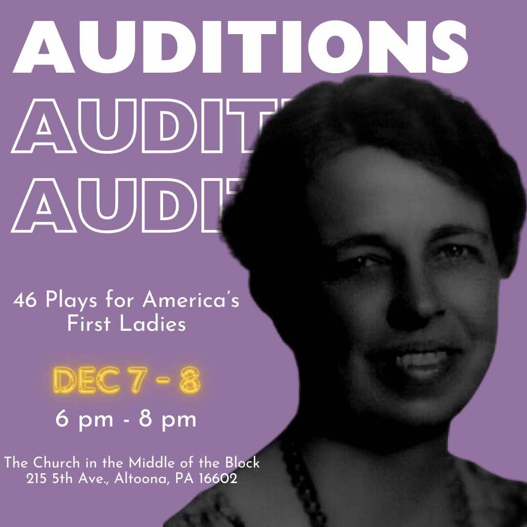Step on the stage, and step into history! Auditions will be held December 7th and 8th for Things Unseen Theatre’s production of 46 Plays for America’s First Ladies — an insightful, humorous and deeply human journey exploring the lives and legacies of our nation’s first ladies.
